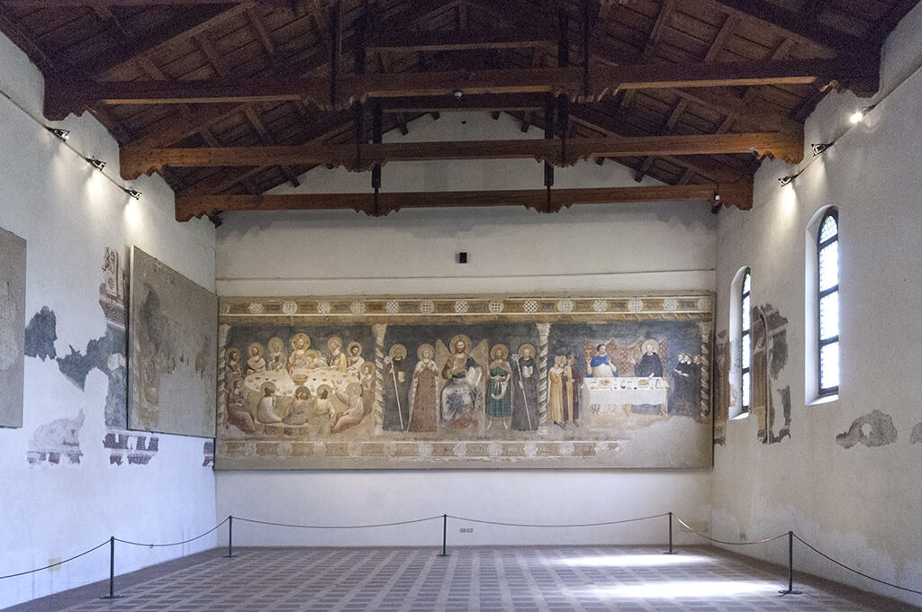 Spostandovi solo di pochi passi, sarete nell’attiguo museo Pomposiano dove ammirare affreschi e stucchi che illustrano la storia del complesso; il percorso di visita comprende anche l’aula capitolare e il refettorio – entrambi decorati da affreschi trecenteschi – la sala delle Stilate e il palazzo della Ragione, aggiunto in epoca comunale.