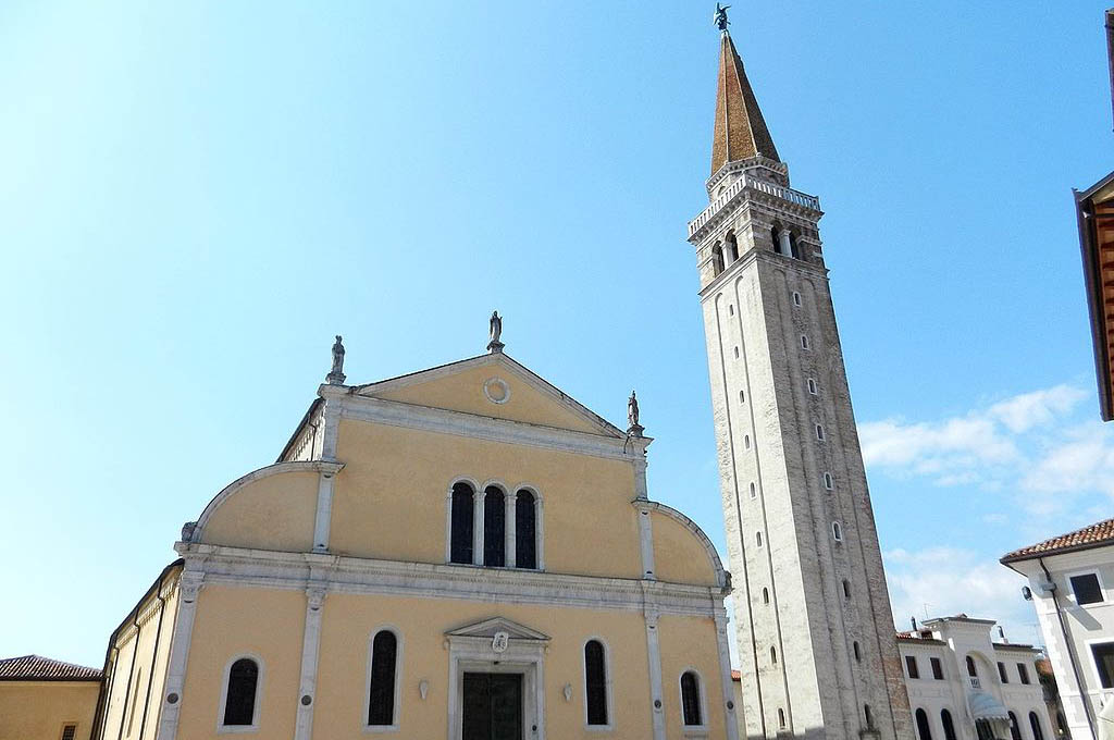 Percorrendo via della Pietà vedrete a sinistra il piccolo Battistero affacciato al Livenza poco prima di scorgere sul lato opposto la sagoma dell’imponente campanile in stile veneziano che si alza per oltre 50 metri sovrastato dalla statua in bronzo di un angelo che sorveglia il vicino Duomo (1474-96). Edificato sul sito di un’antica pieve, subì numerose trasformazioni anche a causa dei terremoti che colpirono la zona; il portale in bronzo è opera dell’artista Casarini che si occupò anche di affrescare il presbiterio.
