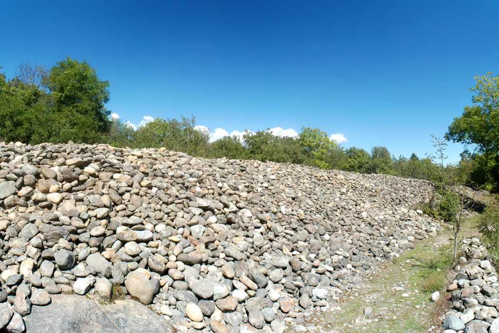 Se oggi potete camminare sui sentieri e tra questi grandi cumuli di ciottoli, lo dovete agli antichi romani che, tra il II e il I secolo a. C. fecero della Bessa una delle più grandi miniere d’oro a cielo aperto. Vi troverete dunque di fronte a grandi cumuli di ciottoli che non sono altro che le pietre di scarto della ricerca dell’oro, piccole “colline” che possono raggiungono però anche i 10 metri di altezza e larghezze piuttosto variabili, da pochi metri fino a centinaia. Tra queste montagne di sassi noterete i resti dei canali (un tempo forse rivestiti di legno) in cui veniva lavata la sabbia per separarla da pepite e pagliuzze del prezioso minerale e, camminando tra gli arbusti che rivestono i cumuli alla loro base, scorgerete tracce delle antiche strade con i segni del passaggio dei carri e muretti, testimonianza della presenza di abitazioni o ripari utilizzati durante il lavoro di estrazione.