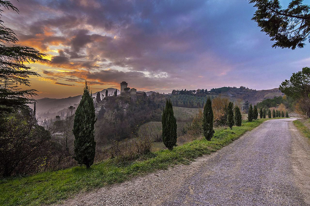 Le ultime case erano scomparse dallo specchietto retrovisore quando la strada s’infilò lentamente nel bosco dove gli alberi si chinavano sullo sterrato che crepitava sotto l’incedere lento delle gomme. Superato il grande castagno che frusciò severo sul tetto dell’auto, il paesaggio riapparve; si trovò di fronte un dolce saliscendi di colline disegnate dal minuzioso lavoro di un trattore che borbottava lontano. Mancava poco. Solo due lunghe curve la dividevano dalla torre sulla cima del poggio che iniziava a delineare i suoi contorni. Era ancora giorno, ma in quel momento del pomeriggio che fa pace con la sera, quando la luce radente perde forza e mescola l’arancio del sole al rosa del cielo.