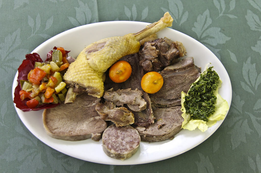 Le carni sono servite accompagnate da gustose salse, tra cui primeggia la salsa verde a base di prezzemolo, capperi e aglio sminuzzati. Immancabili anche primi piatti di alta qualità, tortellini e passatelli in brodo, pasta e fagioli, trippa e altri squisiti piatti della tradizione gastronomica emiliana.